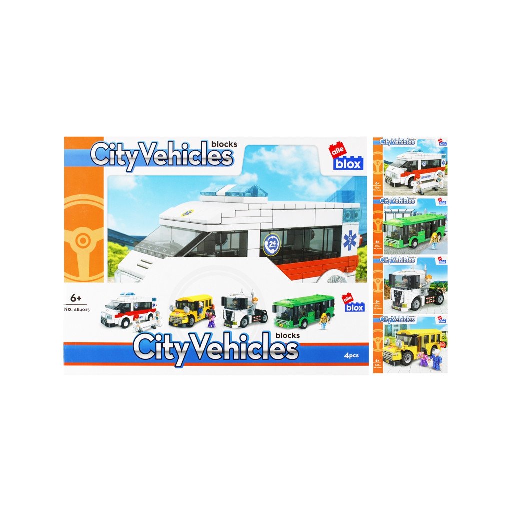 Mestské vozidlo s pozidlo s pohyblivými prvkami Stavebnica, balenie jedného kusu má rozmery 34x27x6 cm. Na výber zo štyroch variánt. Balené v boxe po 4 ks. Cena je za kus, ktorý obsahuje od 211 do 255 prvkov a montážny návod. Vhodné pre deti 6+. Rozmer (cm)