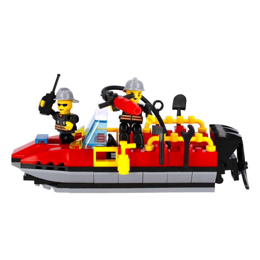 Hasičský čln s postavičkou Stavebnica, má rozmery 16x8x8 cm. Cena je za kus, ktorý obsahuje od 118 prvkov a montážny návod. Vhodné pre deti 6+....