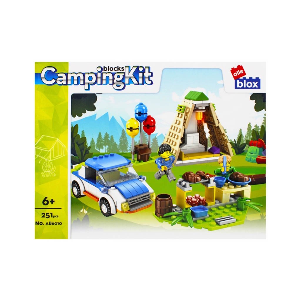 Kempovanie s príslušenstvom Stavebnica, auto-13x6x6cm, krb-8x8x5cm, kuchynský kút-10x3x5cm. Cena je za balenie, ktorý obsahuje 251 tehlových prvkov a montážny návod. Vhodné pre deti 6+....
