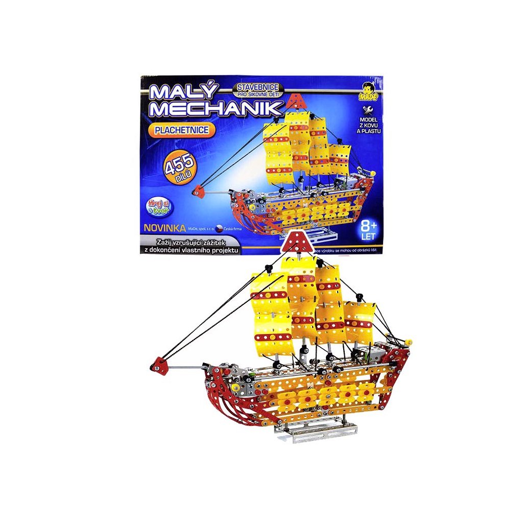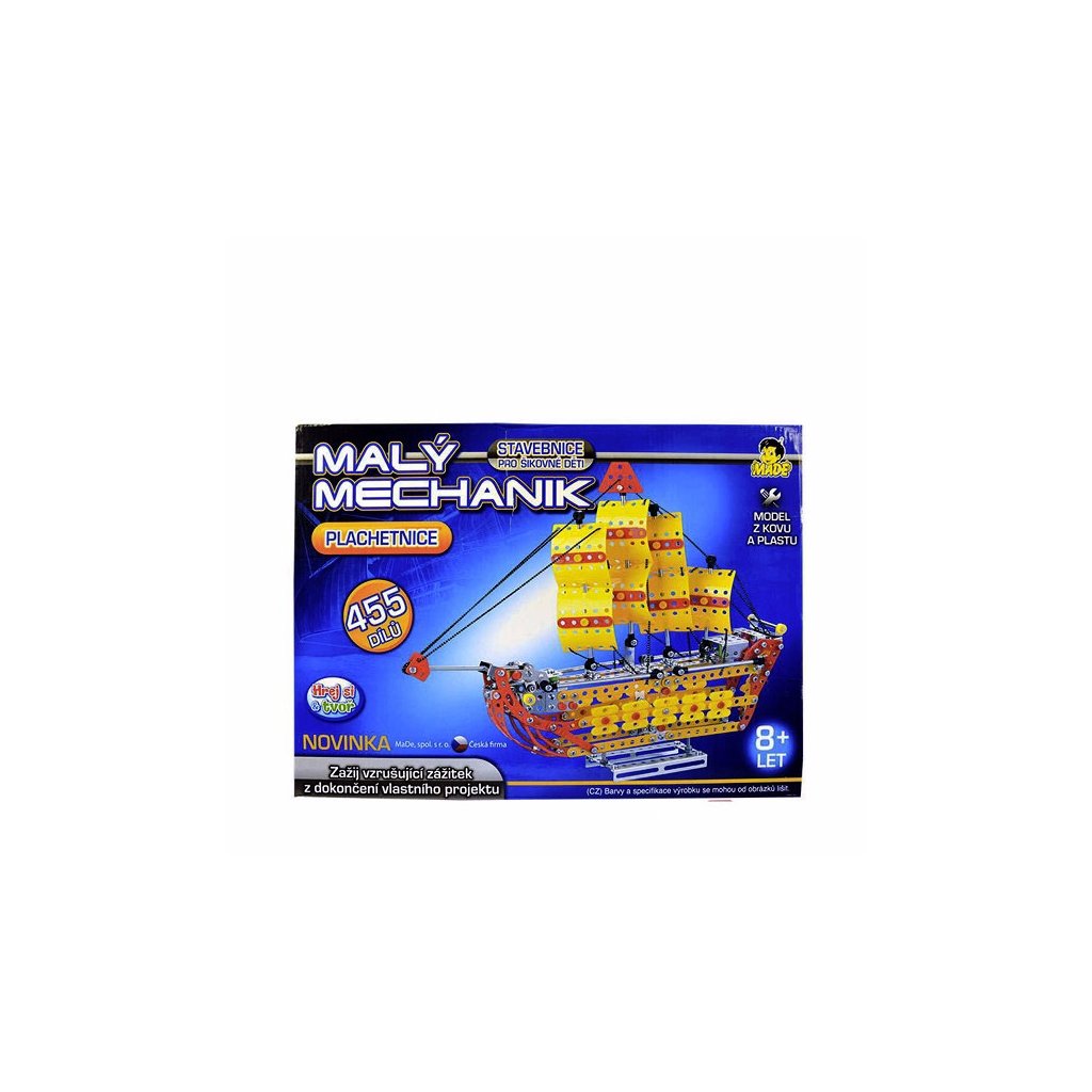 Stavebnica Malý mechanik Plachetnica. Stavebnica z 455 ks kovových a plastových častí, s možnosťou postaviť Plachetnicu alebo iný kreatívny projekt. Vhodná je pre deti od 8 rokov. Rozmer (cm)