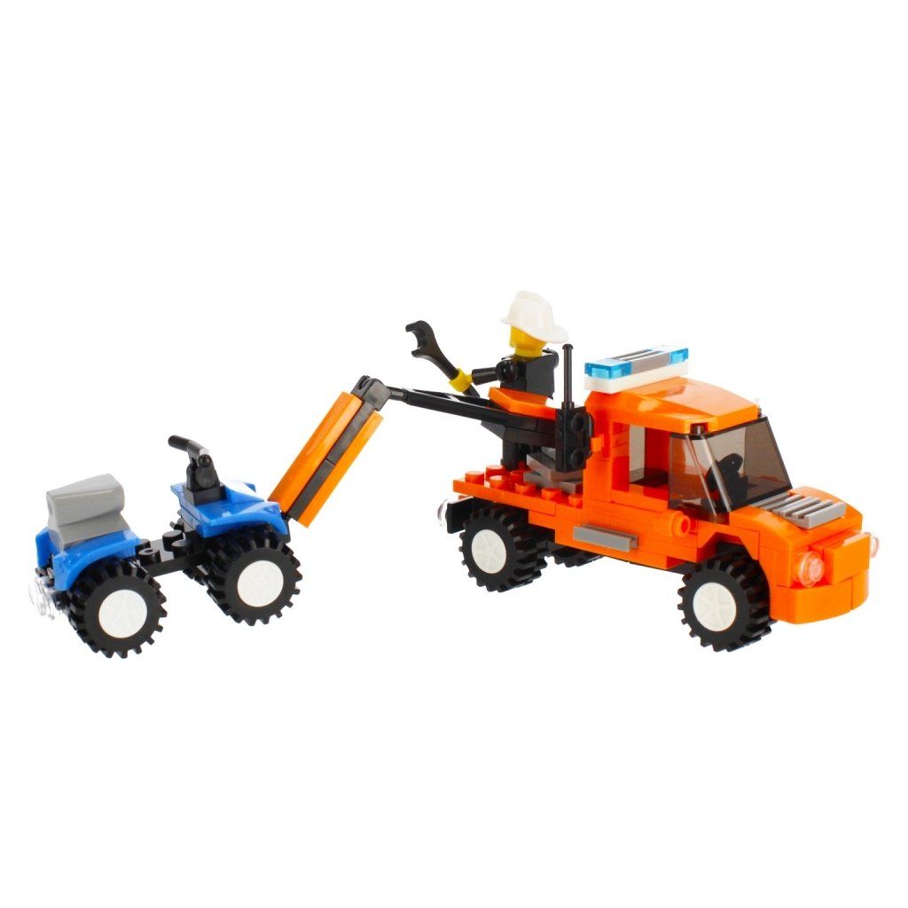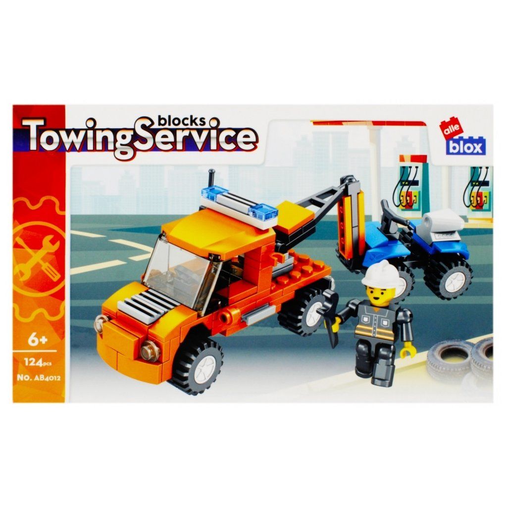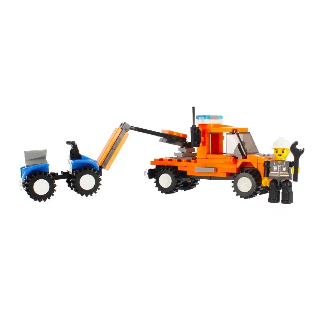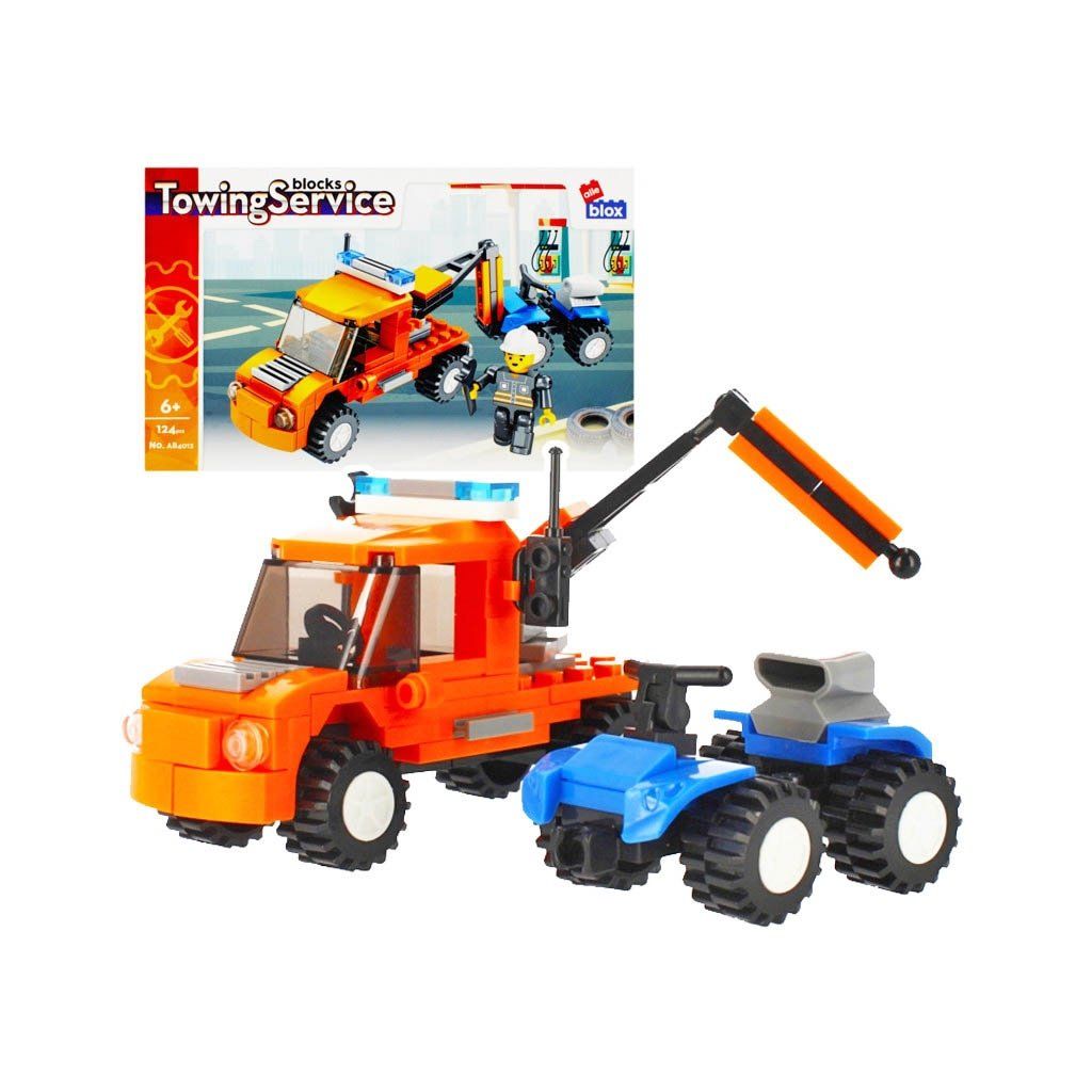 Odťahovka s autom a postavičkou Stavebnica, balenie má rozmery 27x17x5 cm a príslušenstvo má rozmery odťahovka-14x7x4cm, ťahané vozidlo-7x4x4cm. Cena je za kus, ktorý obsahuje 124 prvkov a montážny návod. Vhodné pre deti 6+. Rozmer (cm)