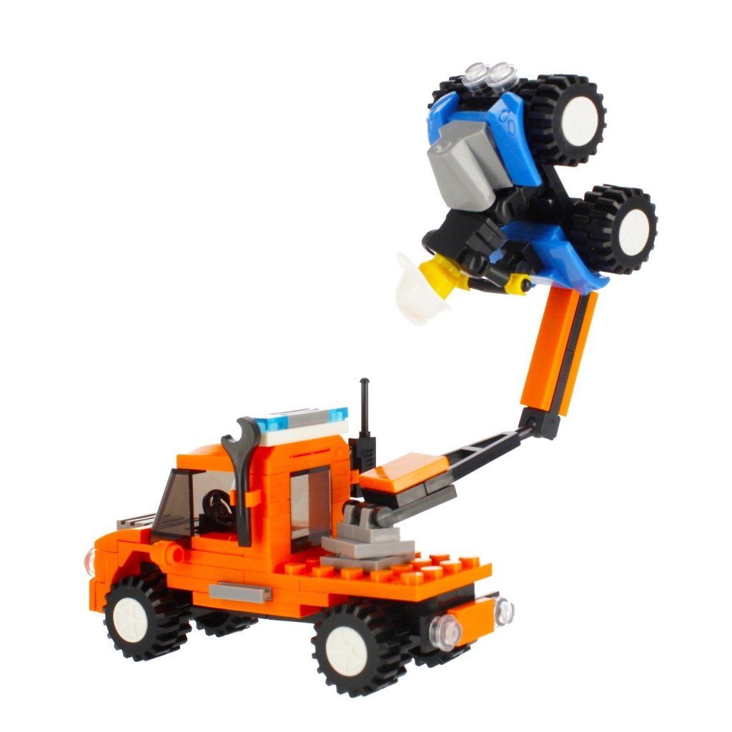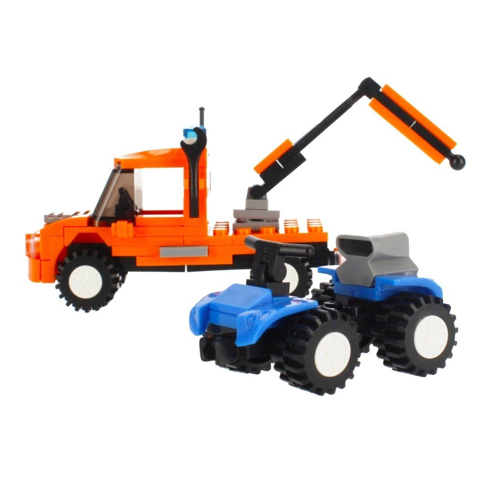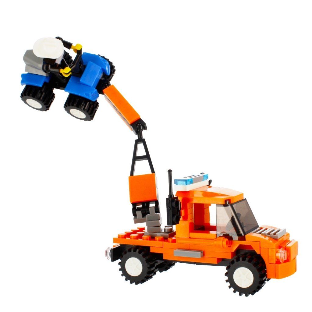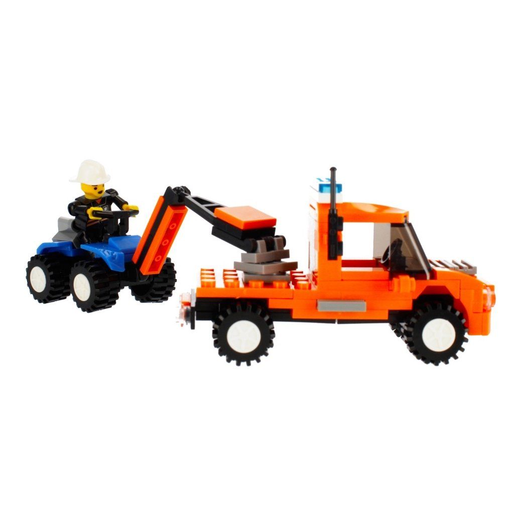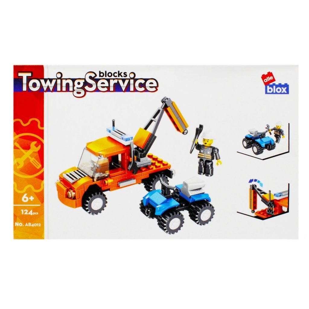 Odťahovka s autom a postavičkou Stavebnica, balenie má rozmery 27x17x5 cm a príslušenstvo má rozmery odťahovka-14x7x4cm, ťahané vozidlo-7x4x4cm. Cena je za kus, ktorý obsahuje 124 prvkov a montážny návod. Vhodné pre deti 6+. Rozmer (cm)