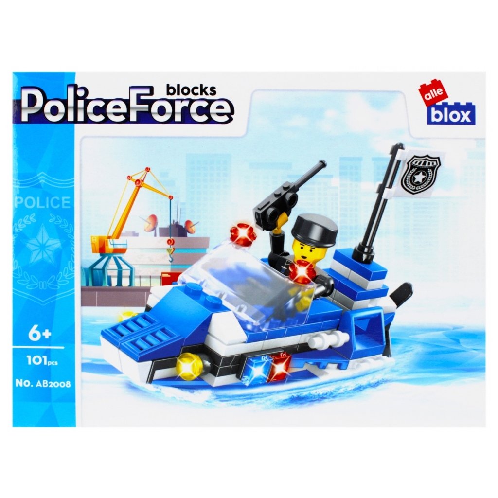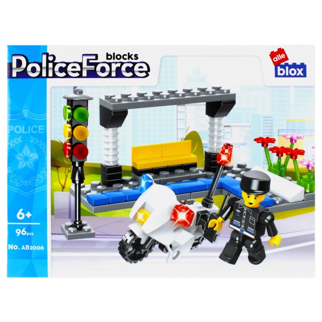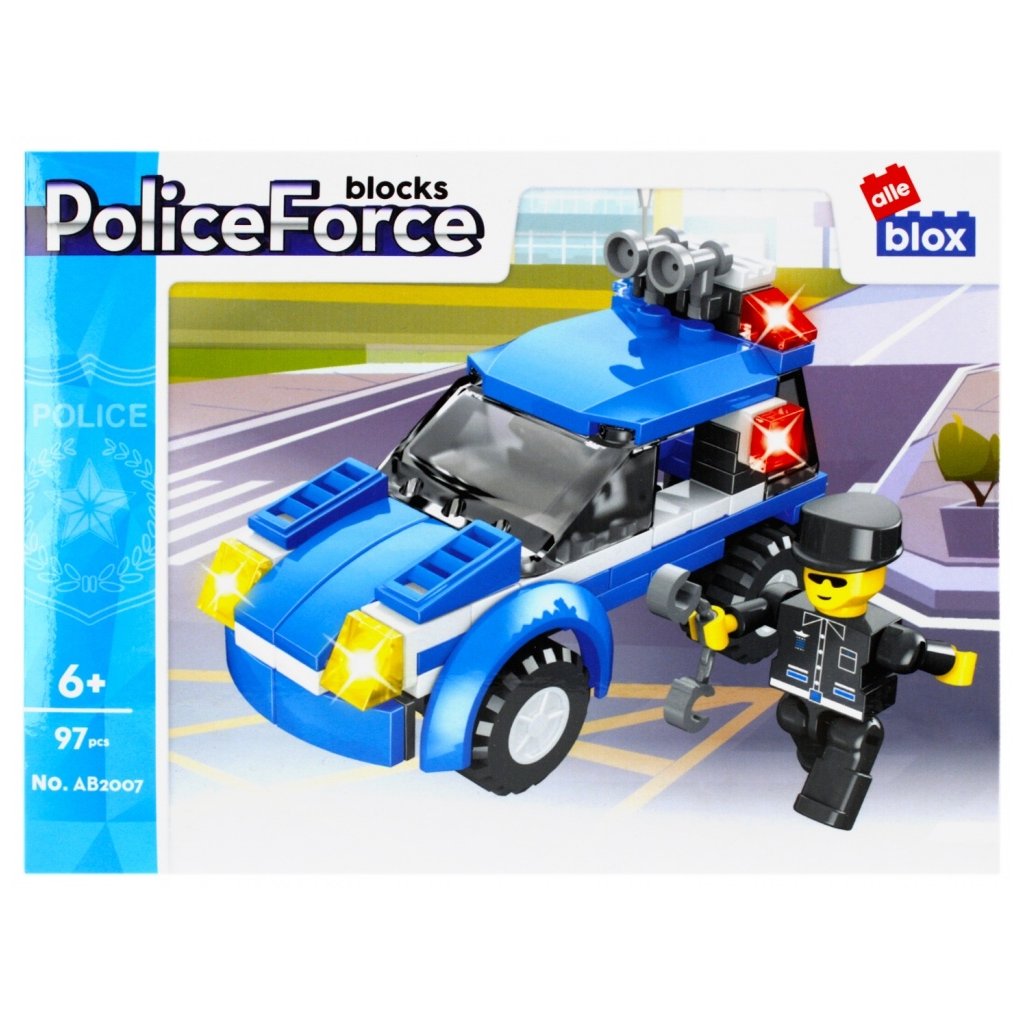 Policajt panáčik s vozidlom Stavebnica, má rozmery 12x8x6 cm. Na výber zo štyroch variánt. Balené v boxe po 12 ks. Cena je za kus, ktorý obsahuje od 96 do 104 prvkov a montážny návod. Vhodné pre deti 6+. Rozmer (cm)