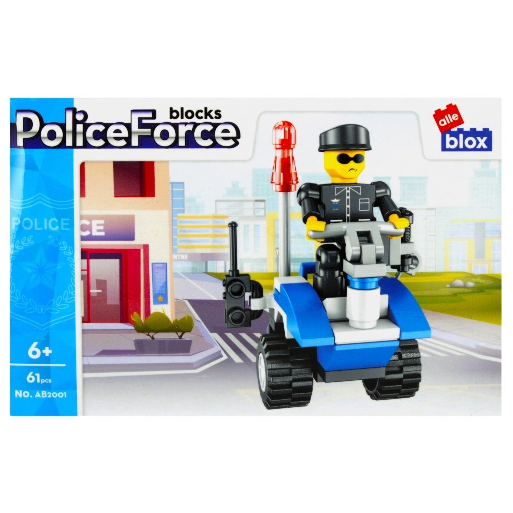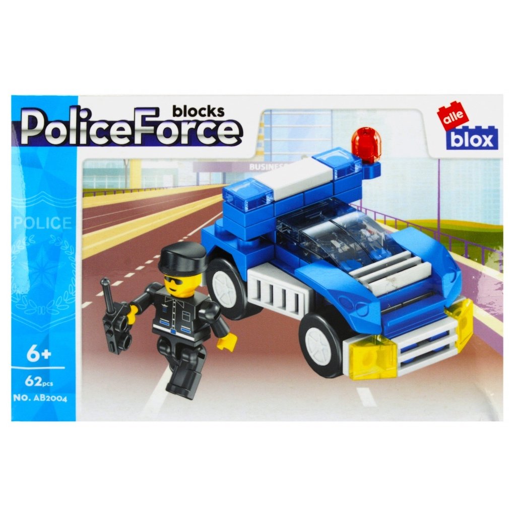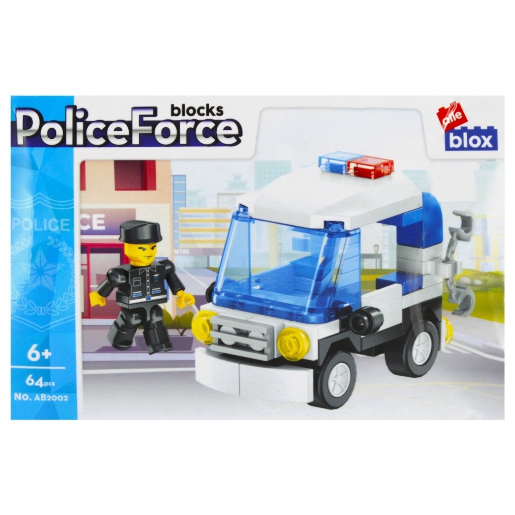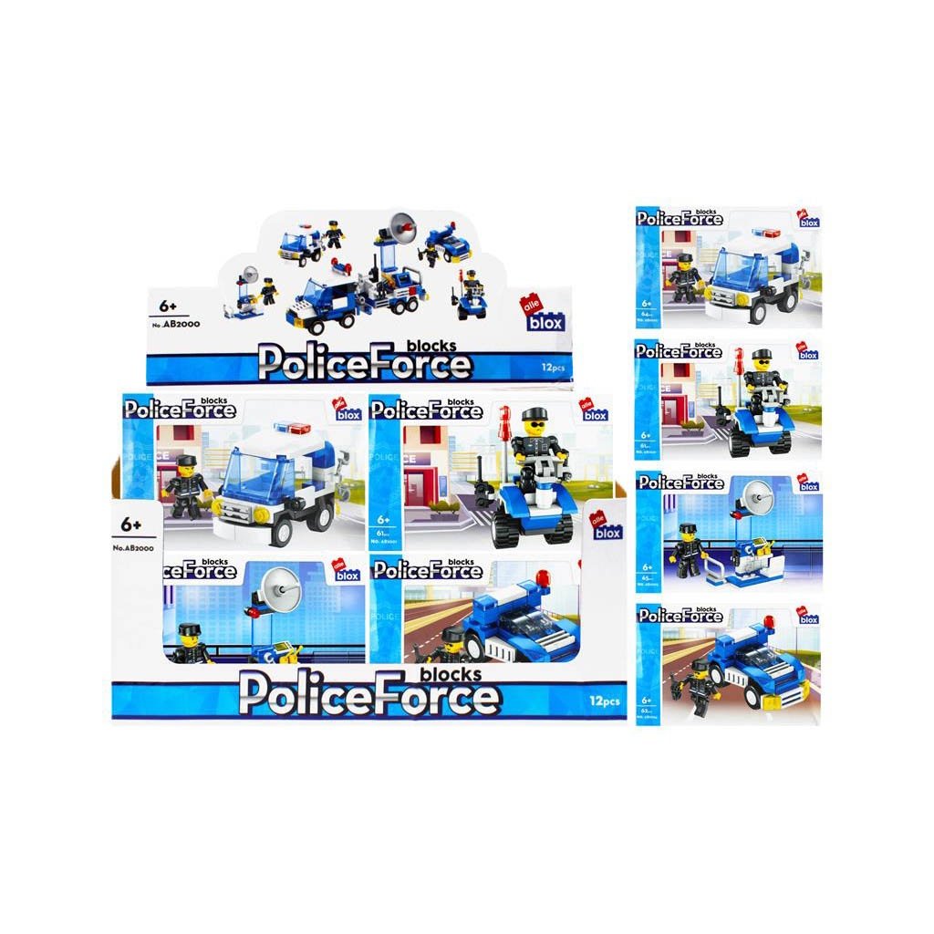 Policajné vozidlo s postavičkou Stavebnica, balenie produktu má rozmery 15x10x5 cm. Na výber zo štyroch variánt. Balené v boxe po 12 ks. Cena je za kus, ktorý obsahuje 63 až 64 prvkov a montážny návod. Vhodné pre deti 6+. Rozmer (cm)