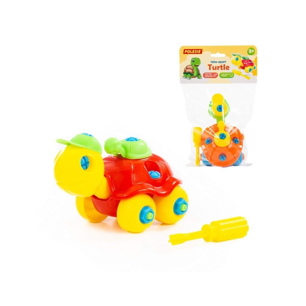 Stavebnica rozoberateľná korytnačka obsahuje 22 dielov, z ktorých si deti môžu zostaviť vlastnú figúrku korytnačky a následne ju opakovane rozoberať a skladať. Jednotlivé časti sa spájajú pomocou skrutiek, čo rozvíja jemnú motoriku, logické myslenie a technické zručnosti. Hra podporuje kreativitu a trpezlivosť pri objavovaní princípu skladania.
