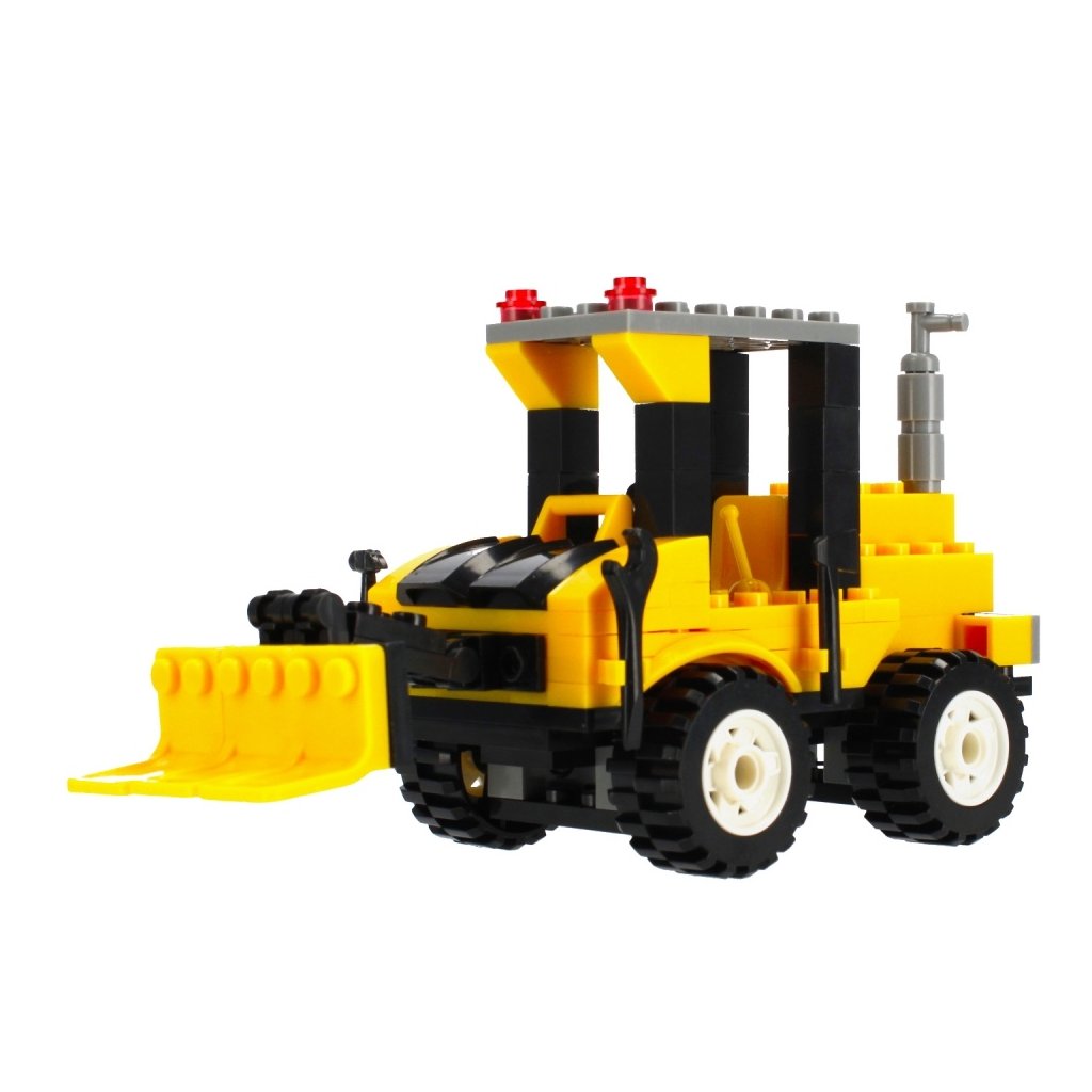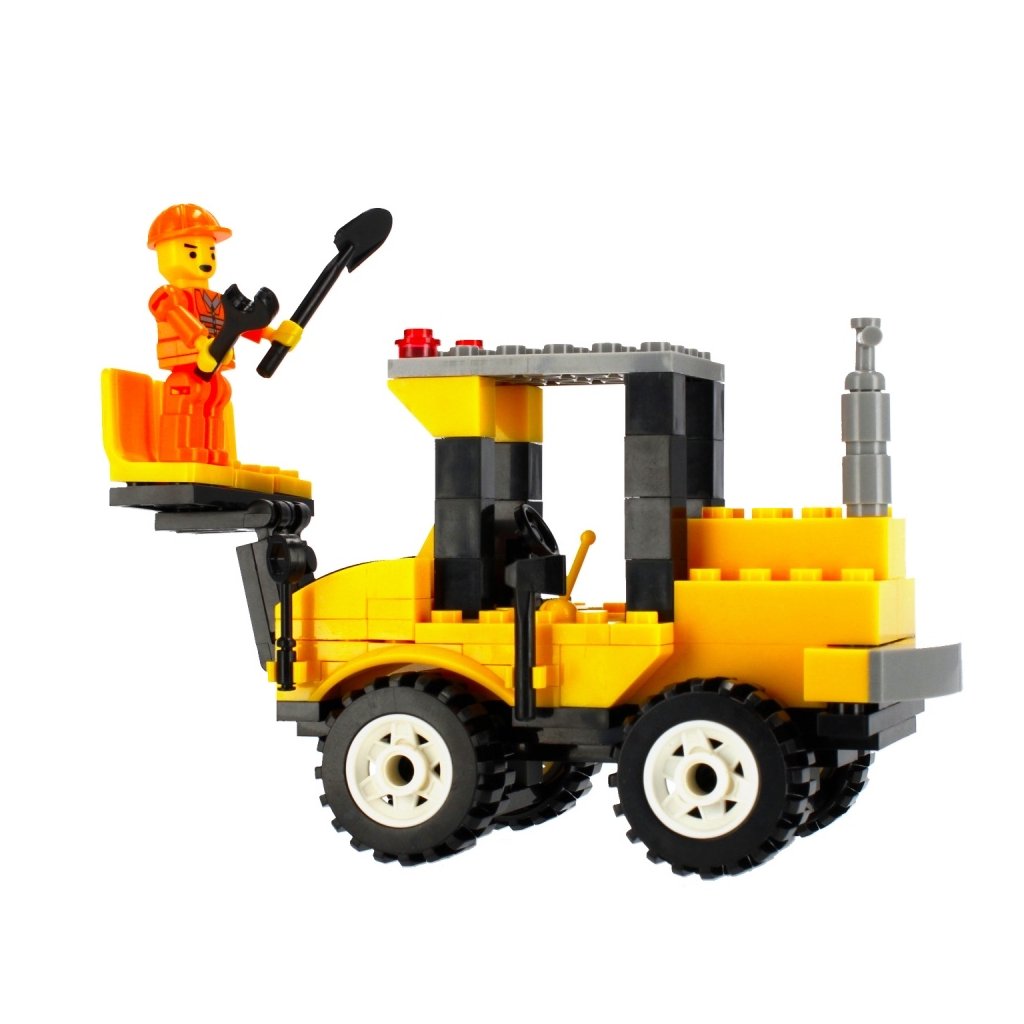 Stavebný stroj s panáčikom Stavebnica, balenie má rozmery 16x8x6cm. Cena je za kus, ktorý obsahuje 127 prvkov a montážny návod. Vhodné pre deti 6+....