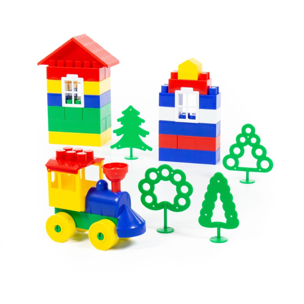 Stavebnica so základných plastových stavebných častí,okien, dverí a koliesok, 44 dielna.