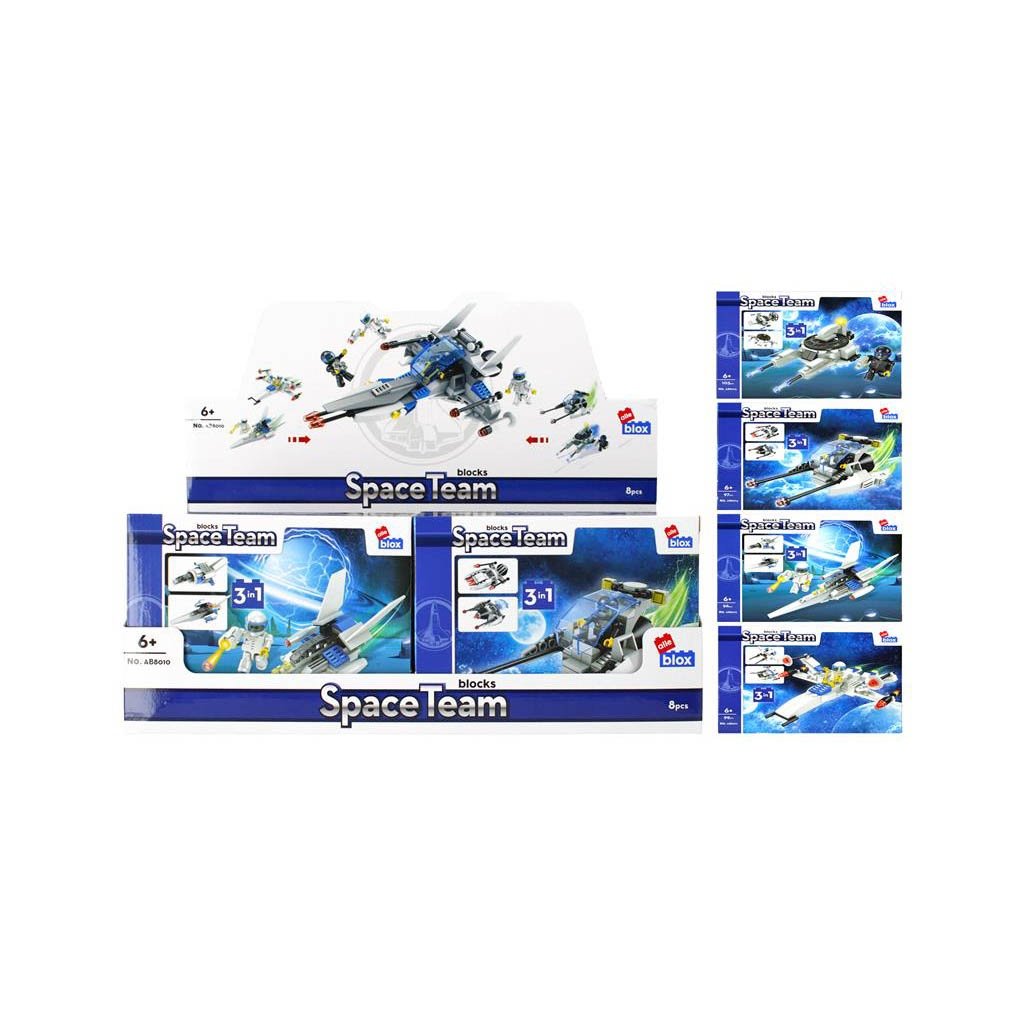 Vesmírna stíhačka Stavebnica, má rozmery 25x9x16 cm. Na výber zo štyroch variánt. Balené v boxe po 8 ks. Cena je za kus, ktorý obsahuje od 97 do 103 prvkov a montážny návod. Vhodné pre ...