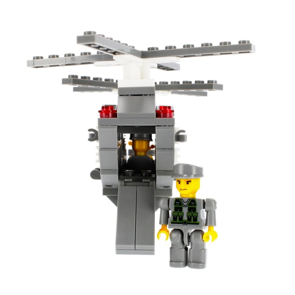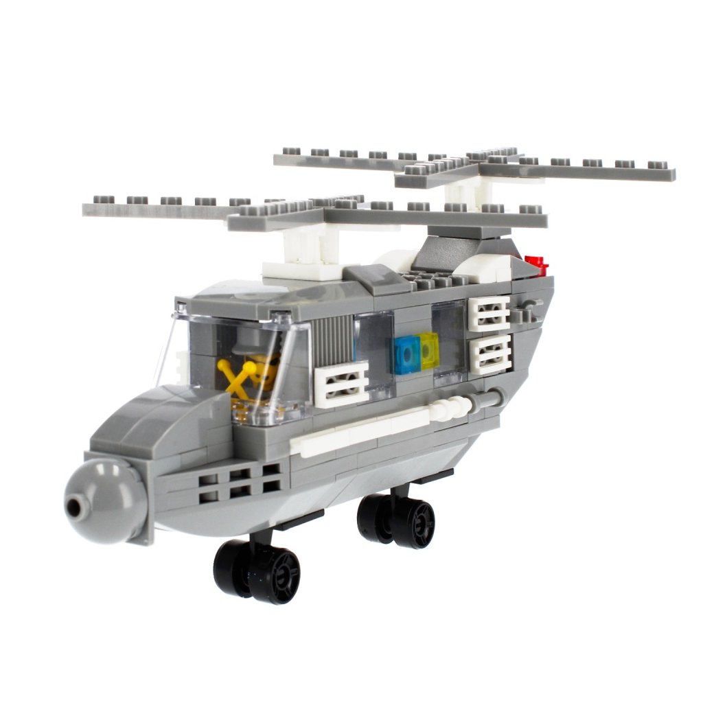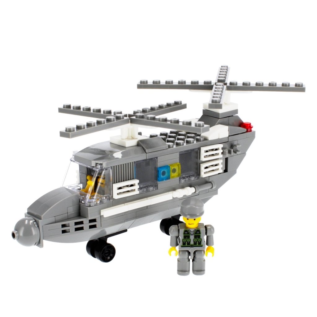 Vojenský vrtulník Stavebnica, má rozmery 18x10x10 cm. Cena je za balenie, ktorý obsahuje 179 tehlových prvkov a montážny návod. Vhodné pre deti 6+....