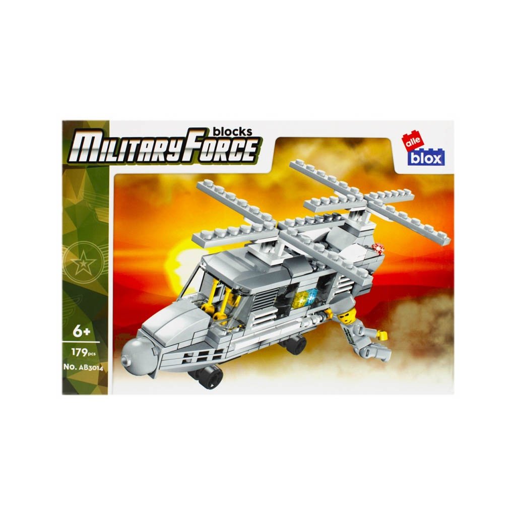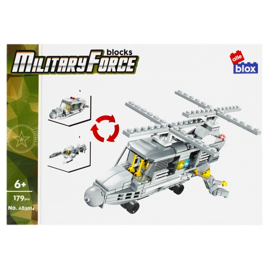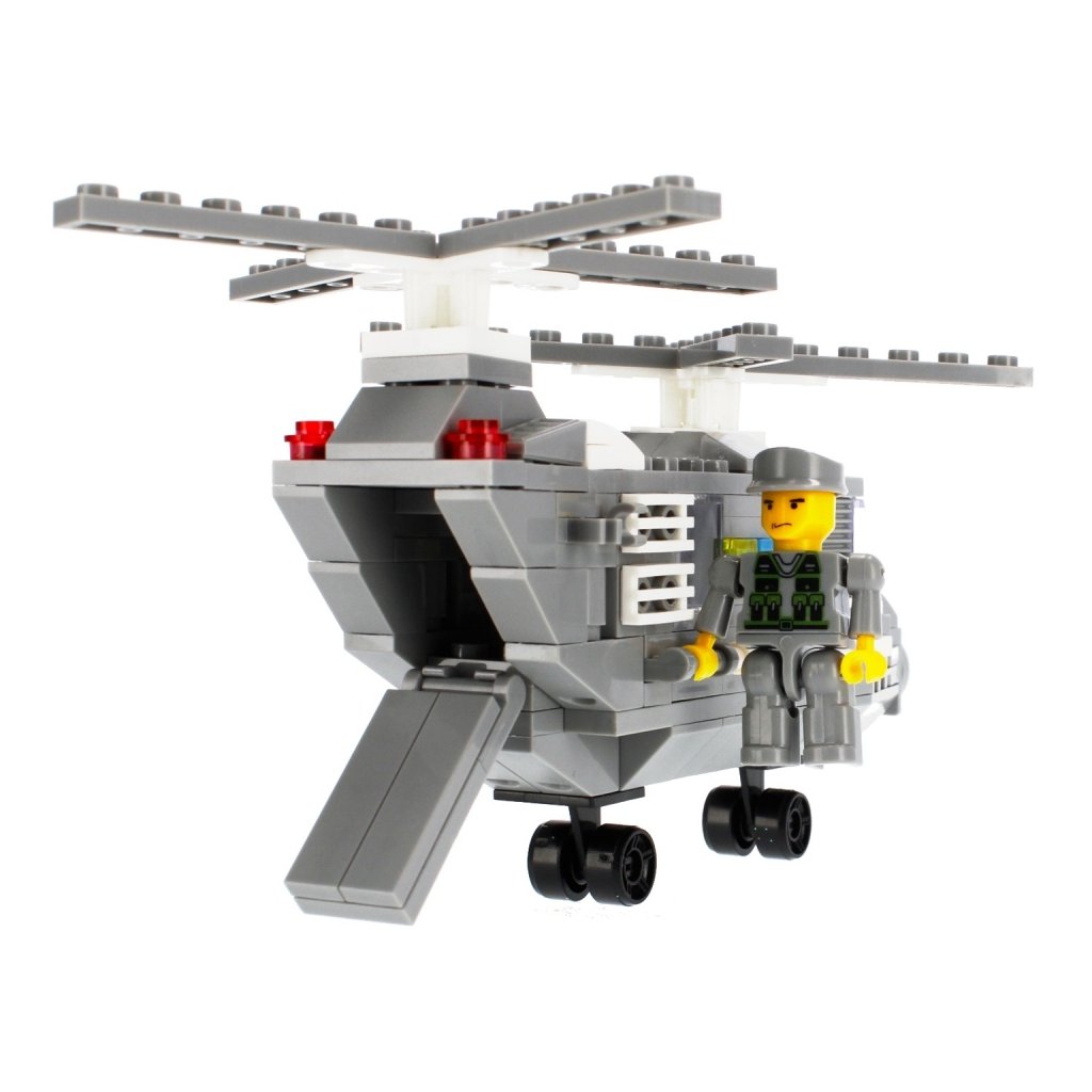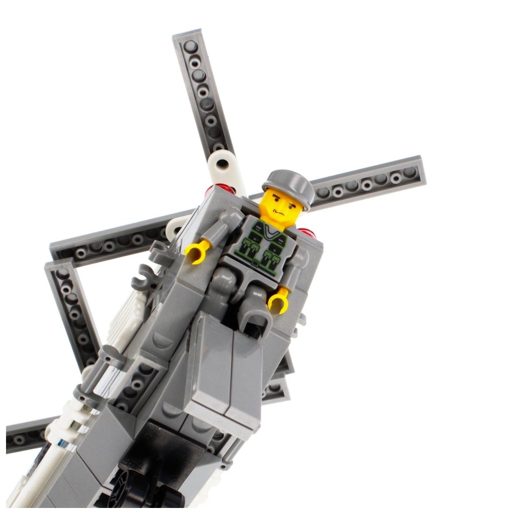 Vojenský vrtulník Stavebnica, má rozmery 18x10x10 cm. Cena je za balenie, ktorý obsahuje 179 tehlových prvkov a montážny návod. Vhodné pre deti 6+....