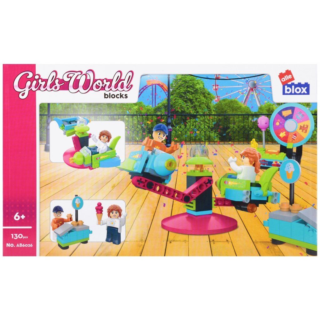 Dievčenský zábavný park Stavebnica, má rozmery 14x7x8 cm. Cena je za balenie, ktorý obsahuje 130 tehlových prvkov a montážny návod. Vhodné pre deti 6+....