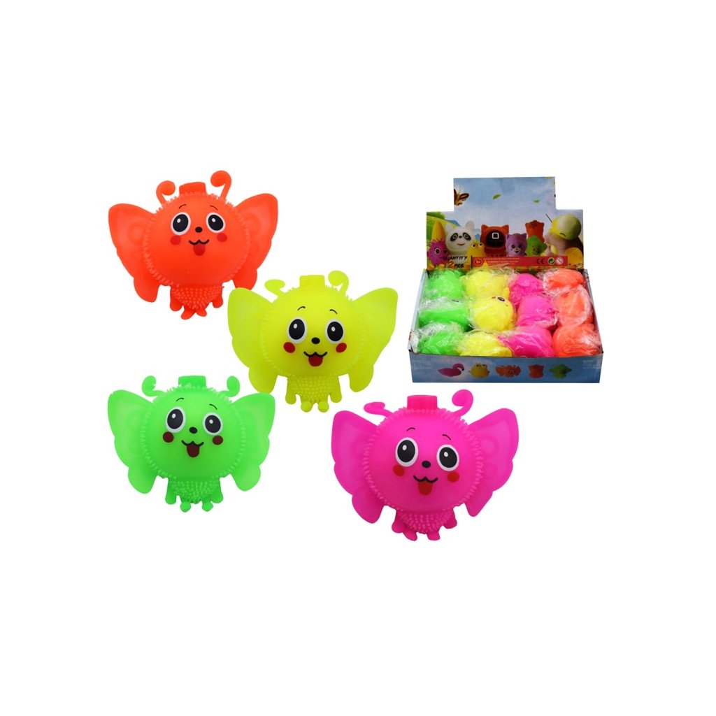 Antistresový 10cm stláčací motýlik. Možnosť výberu zo štyroch farieb - oranžový, ružový, zelený alebo žltý. Nevhodné pre deti do 3 rokov. Rozmer (cm)