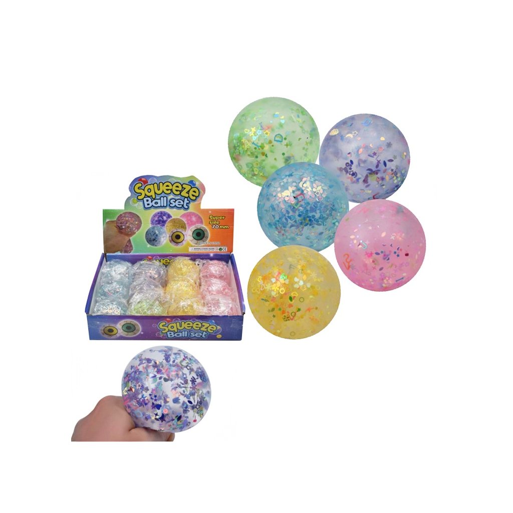 Antistresová 7cm stláčacia loptička. Možnosť výberu z niekoľkých farieb - ružová, žltá, modrá, fialová alebo zelená. Nevhodné pre deti do 3 rokov. Rozmer (cm)