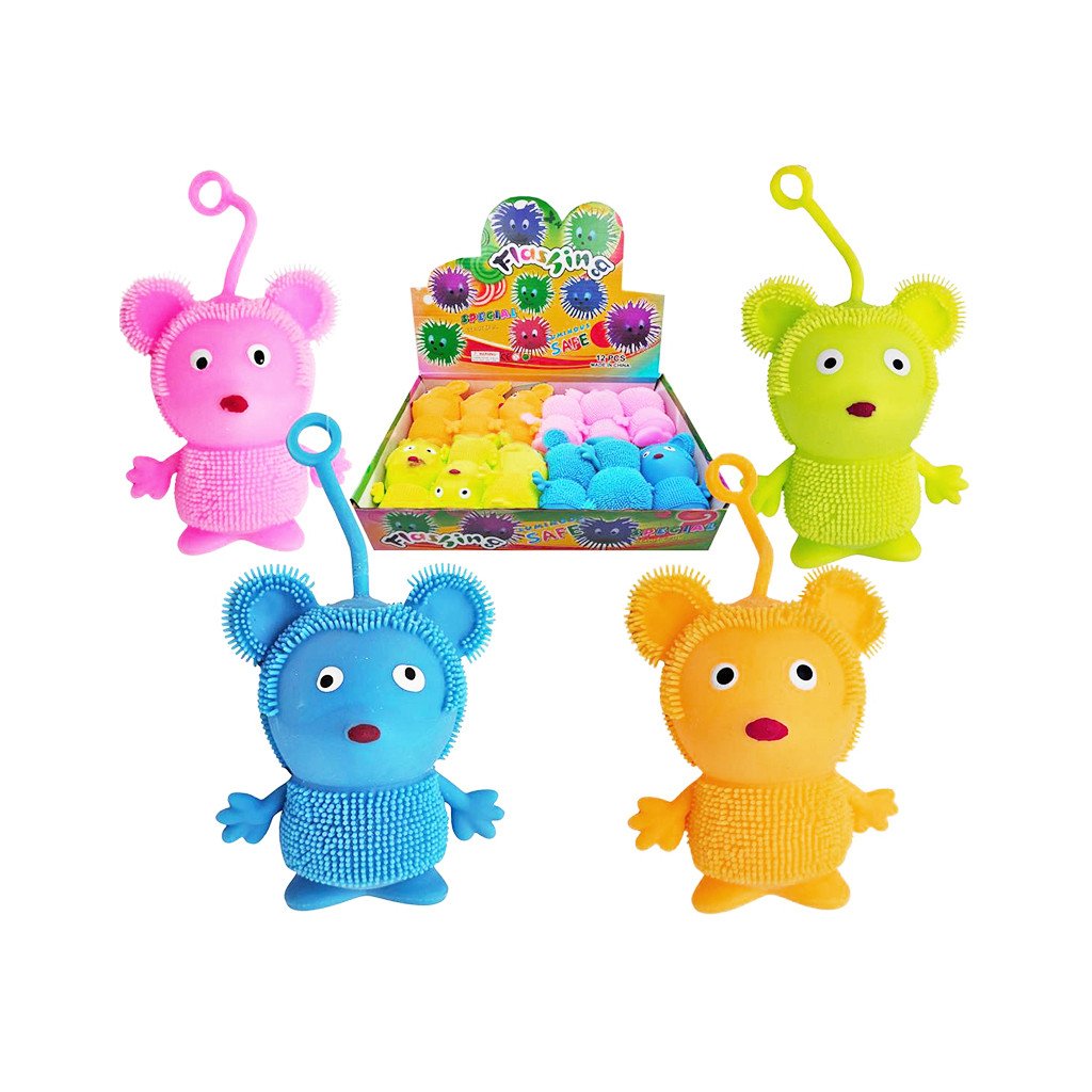 Stláčacia myška so svetlom, zábavná antistresová hračka, ktorá po stlačení svieti. Na výber je zo štyroch farieb. Má rozmery 10,5 cm. Balené v boxe po 12 ks. Cena je za kus. Vhodné pre deti vo veku 3+ rokov. Rozmer (cm)