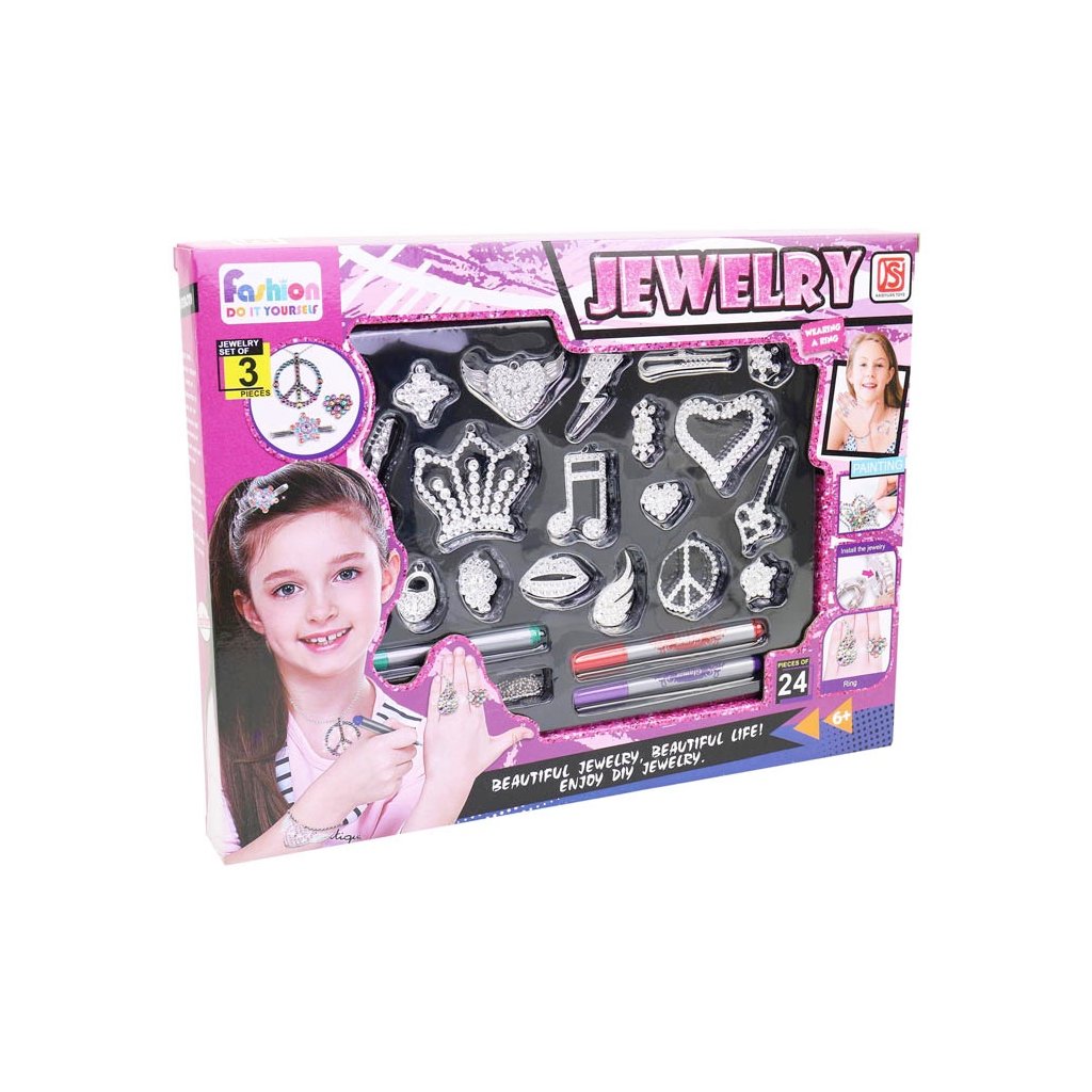 Súprava bižutérie na vyfarbenie. Ručné farbenie diamantových šperkov. Rozmery balenia sú 35x4x26cm. Určené pre deti vo veku 3+....