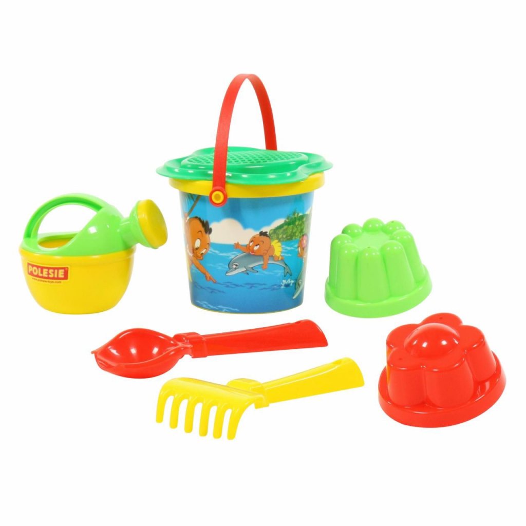 Súprava zo 7 častí, vedierko so sitkom s priemerom 12cm, krhlička, lopatka, hrabličky a 2 formičky. Vyrobená v 6 rôznych rozprávkových obrázkových verziách, k dispozícii podľa aktuálnej skladovej ponuky.