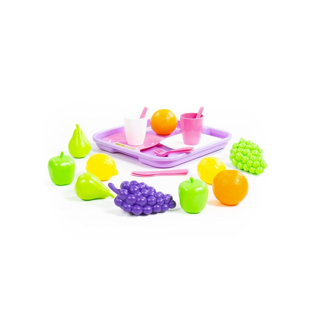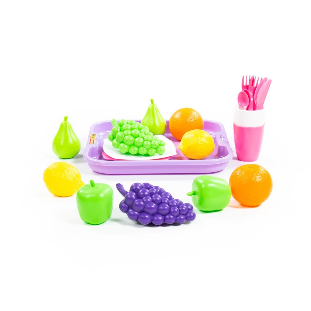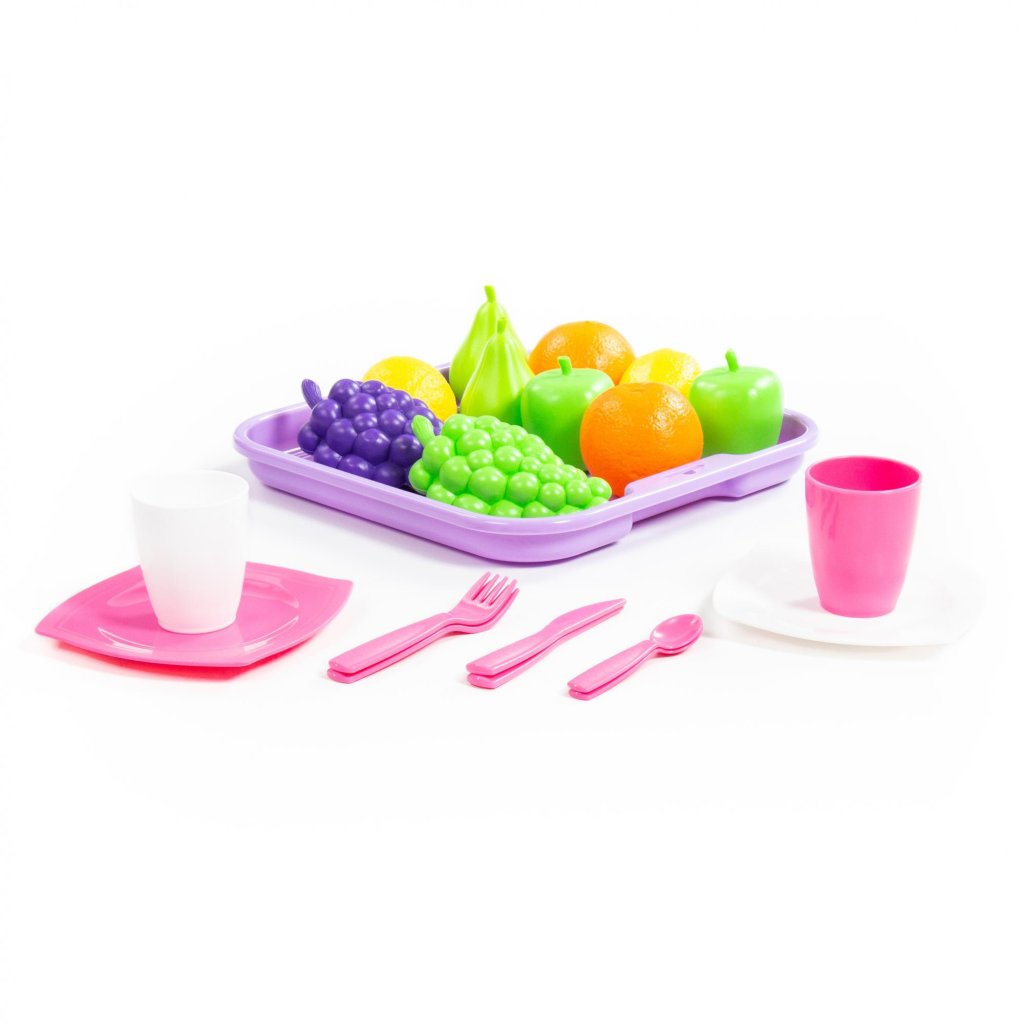 Súprava ovocia, strapec hrozna je 13 cm veľký, s tanierikmi, pohárikmi a príbormi a táckou 28 x 28 cm. Farebný mix je podľa aktuálneho stavu na sklade....