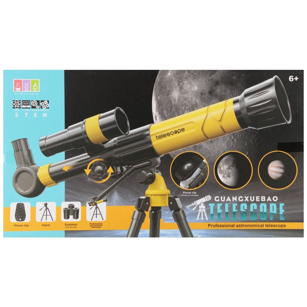 Teleskop na statíve je skvelým darčekom pre malých objaviteľov a budúcich astronómov! Umožňuje deťom pozorovať hviezdy, Mesiac a planéty, pričom stabilná konštrukcia statívu zaisťuje pohodlné a presné sledovanie oblohy. Súčasťou je aj klip na telefón, vďaka ktorému si môžu deti svoje vesmírne objavy odfotiť alebo nahrať. Ľahký a jednoducho ovládateľný teleskop je ideálny na použitie doma aj vonku. Odporúčané od 6 rokov. Cena za kus. Rozmer (cm)