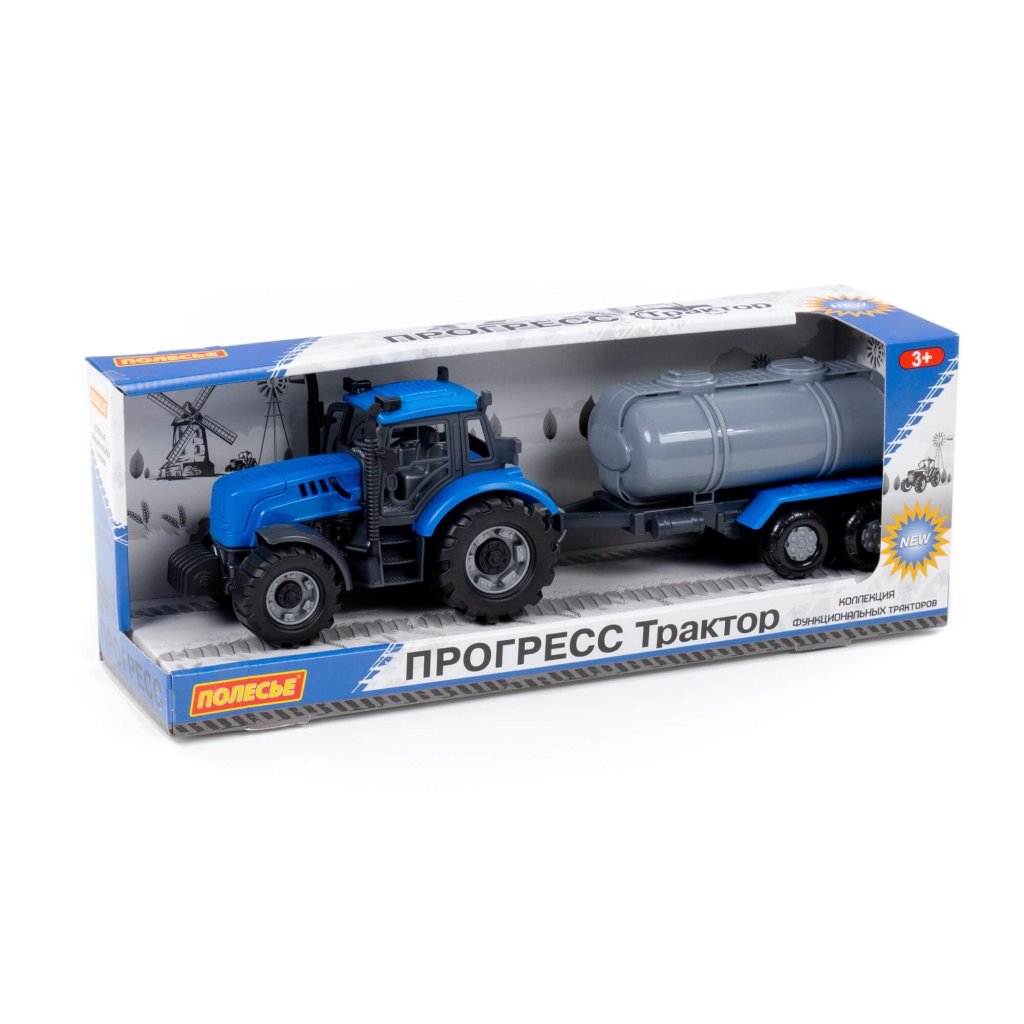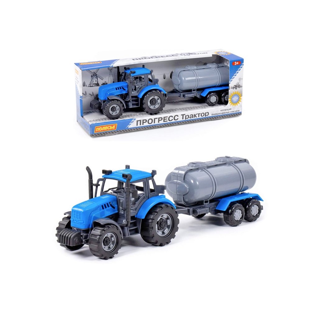 Inerciálny traktor Progress z továrne Polesie je hračkou analógu skutočného špeciálneho vybavenia. Dizajn traktora je vyrobený čo najpodrobnejšie, kapotu traktora je možné počas hry zaaretovať v otvorenej polohe pre opravu. Prítomnosť prívesu s tankom spestrí scenáre detských hier. Traktor je vybavený inerciálnym mechanizmom, ktorý zvyšuje priechodnosť na rôznych povrchoch. Je vzrušujúce hrať sa s ním doma aj na čerstvom vzduchu. Hračka je dodávaná vo svetlej krabici. Rozmer (cm)
