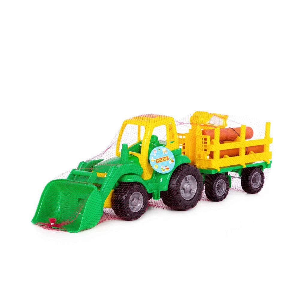 Traktor Šampión s lopatou a lesníckym prívesom je realistická hračka, ktorá umožňuje deťom napodobňovať prácu na farme aj v lese. Predná lopata slúži na nakladanie materiálu a príves je ideálny na prevoz dreva či iného nákladu, čo prináša množstvo možností na kreatívnu hru. Robustné plastové prevedenie je vhodné na použitie doma aj vonku a podporuje rozvoj motoriky aj fantázie. Dostupné vo viacerých prevedeniach. Cena za jeden kus. Rozmer (cm)