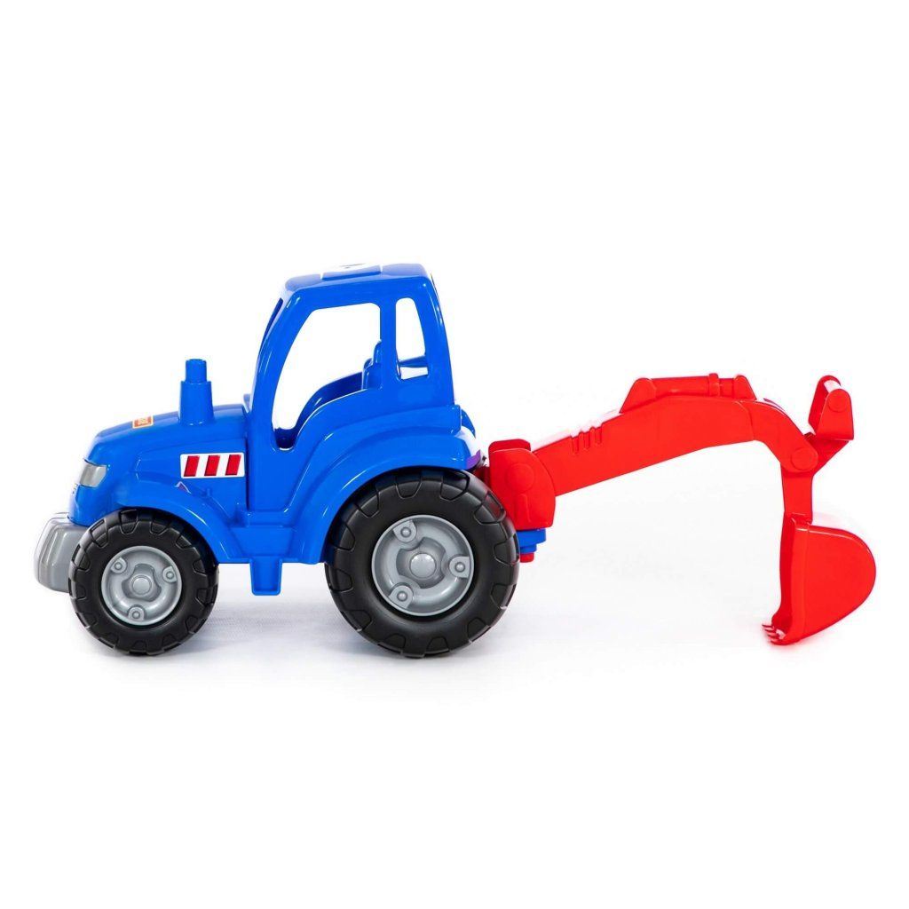 Traktor Šampión s lopatou je realistická hračka v modrom prevedení, ktorá umožňuje deťom napodobňovať stavebné a pracovné činnosti. Predná lopata je ideálna na naberanie a presúvanie materiálu, čo prináša množstvo možností na kreatívnu hru doma aj vonku. Odolné plastové spracovanie zabezpečuje dlhú životnosť a podporuje rozvoj motoriky aj fantázie. Rozmer (cm)
