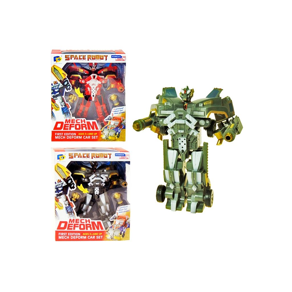 Transrobot auto so zvukom je 18 cm veľký, v balení so zbraňami, mení sa na auto.Po stisnutí tlačidla vydáva zvuky a svieti. V ponuke je v dvoch farbách....