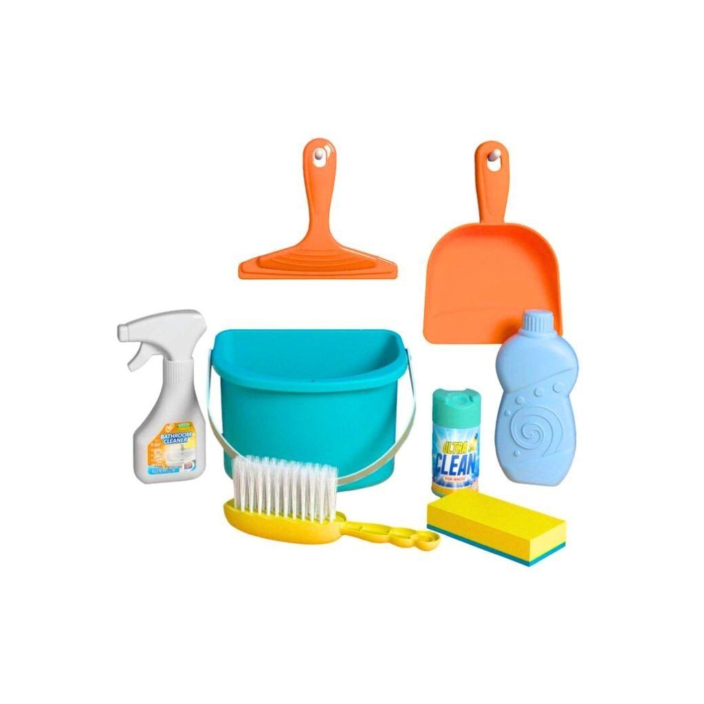 Upratovací set obsahuje 8 dielov ako kýblik, lopatku, stierku, metličku a čistiace prostriedky, vďaka ktorým si deti môžu zahrať na upratovanie a napodobňovať každodenné činnosti. Hra podporuje rozvoj motoriky, zodpovednosti a samostatnosti pri starostlivosti o domácnosť. Rozmer (cm)