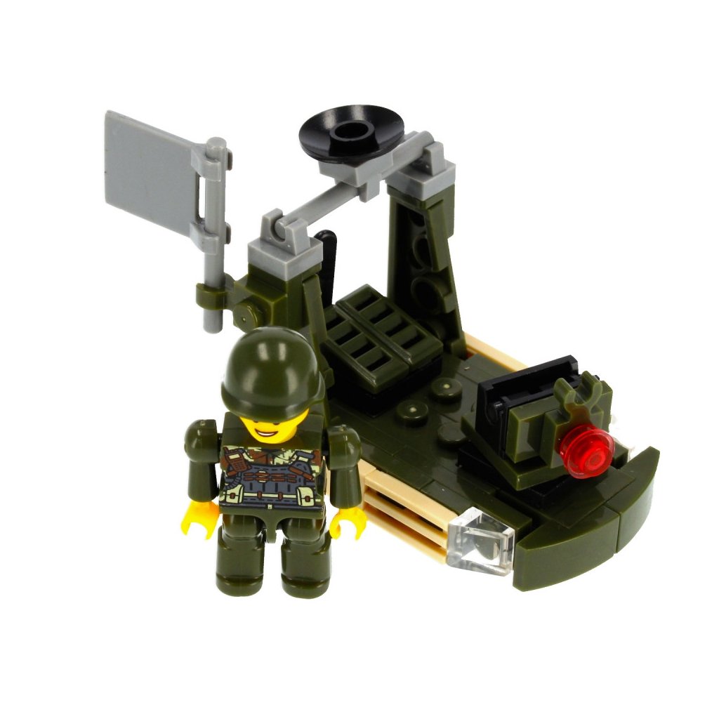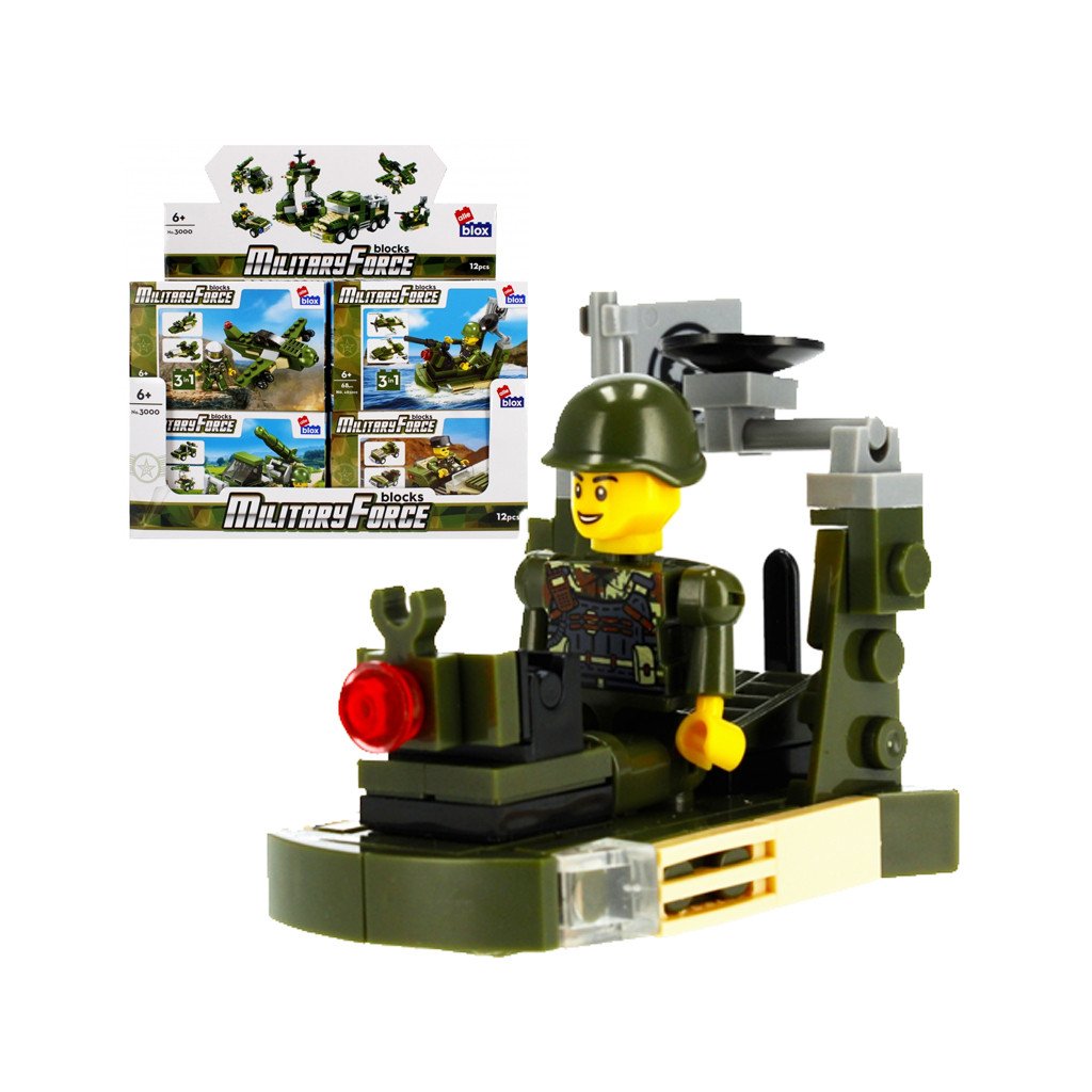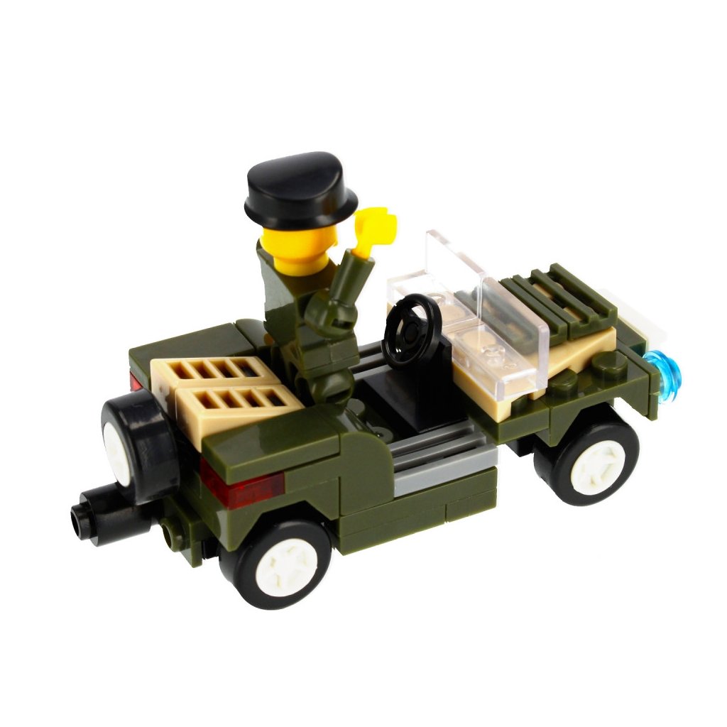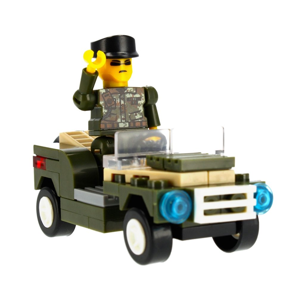Vojenské vozidlo s panáčikom Stavebnica, má rozmery 9x6x10 cm. Na výber zo štyroch variánt. Balené v boxe po 12 ks. Cena je za kus, ktorý obsahuje od 63 do 64 prvkov a montážny návod. ...