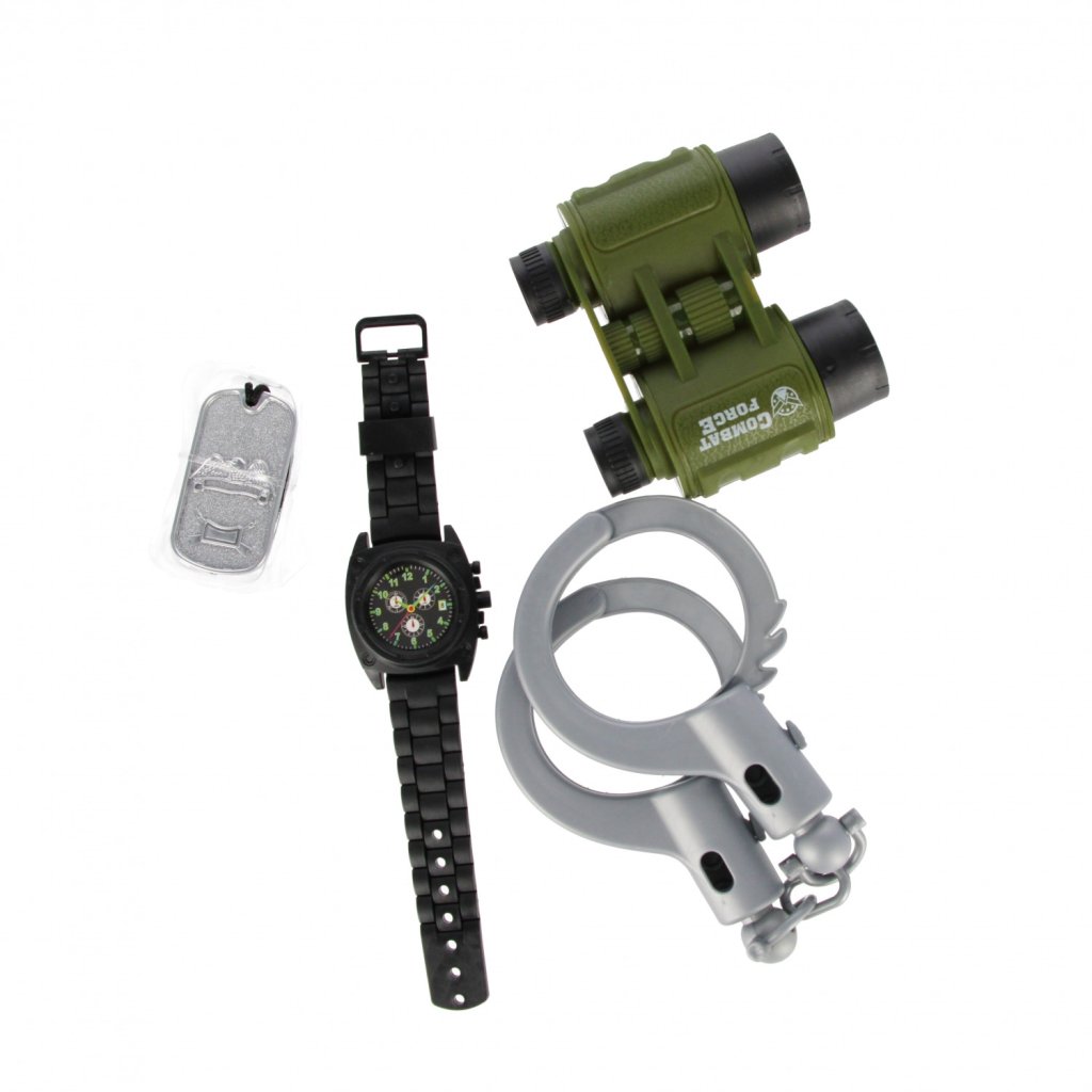 Vojenský set, má rozmery 21x30x3 cm. Sada obsahuje zbraň + puzdro, ďalekohľad, hodinky, putá, odznak. Cena je za sadu. Vhodné pre deti vo veku 3+ rokov. Rozmer (cm)