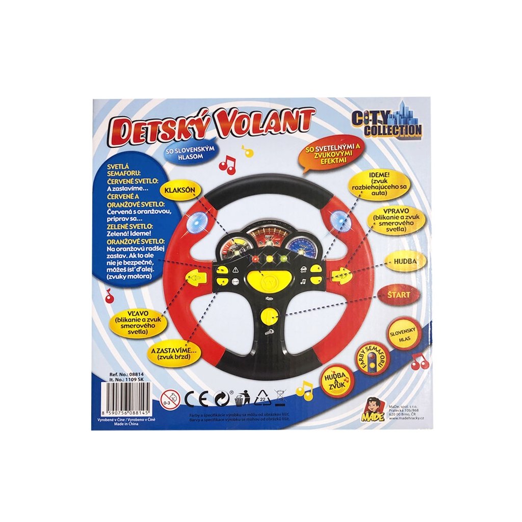 Detský volant so slovenským hlasom a svetelnými efektmi. Dieťa sa pri hre učí farby semaforu, ľavú a pravú stranu alebo sa môže hrať na vodiča. Po náročnej jazde si môže chvíľu spríjemniť veselú melódiu.