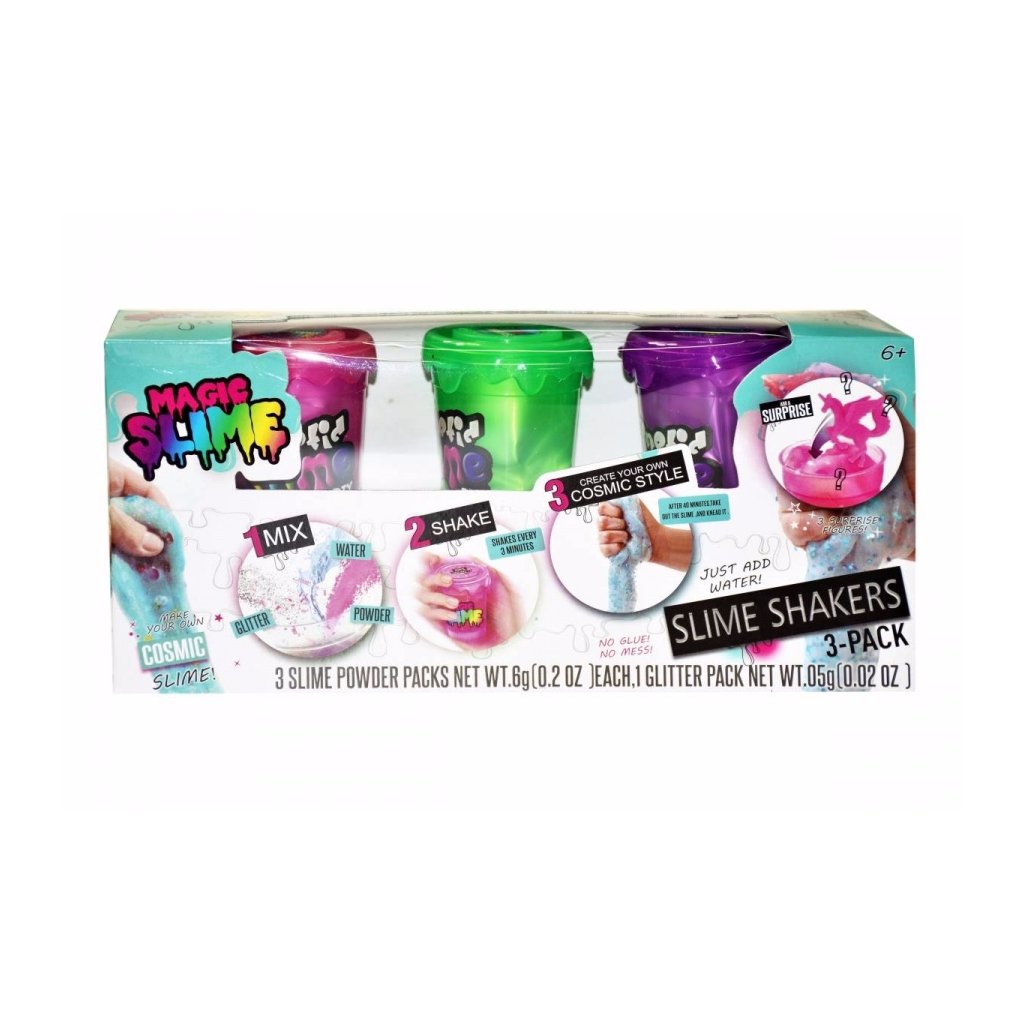 Vyrob si vlastný sliz. Balenie obsahuje - 3x shaker, v ktorých je slizový prášok, trblietky alebo konfety a figúrka. Nevhodné pre deti do 3 rokov....