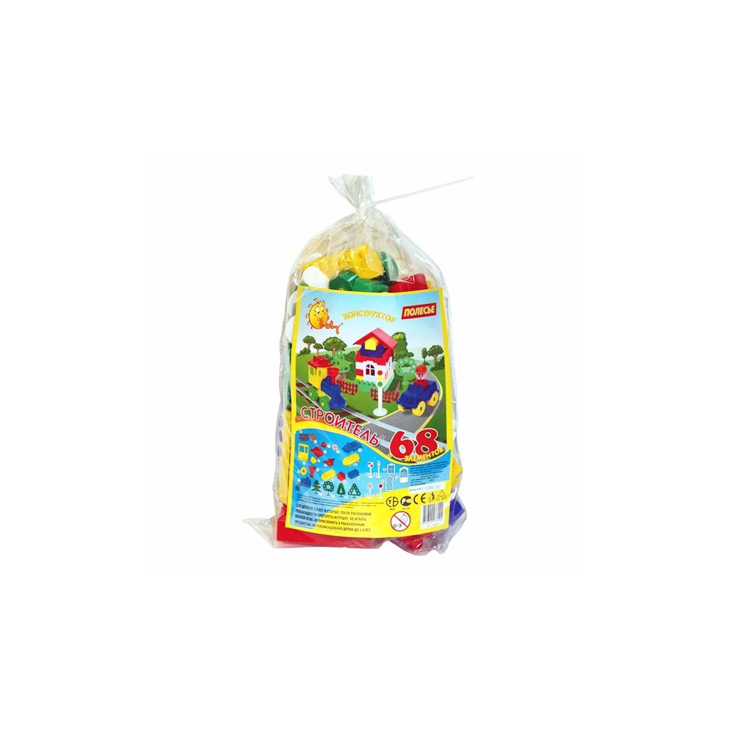 Stavebnica Staviteľ 68, zo základných plastových stavebných častí,okná, dvere, kolieska, časti na postavenie lokomotívy,