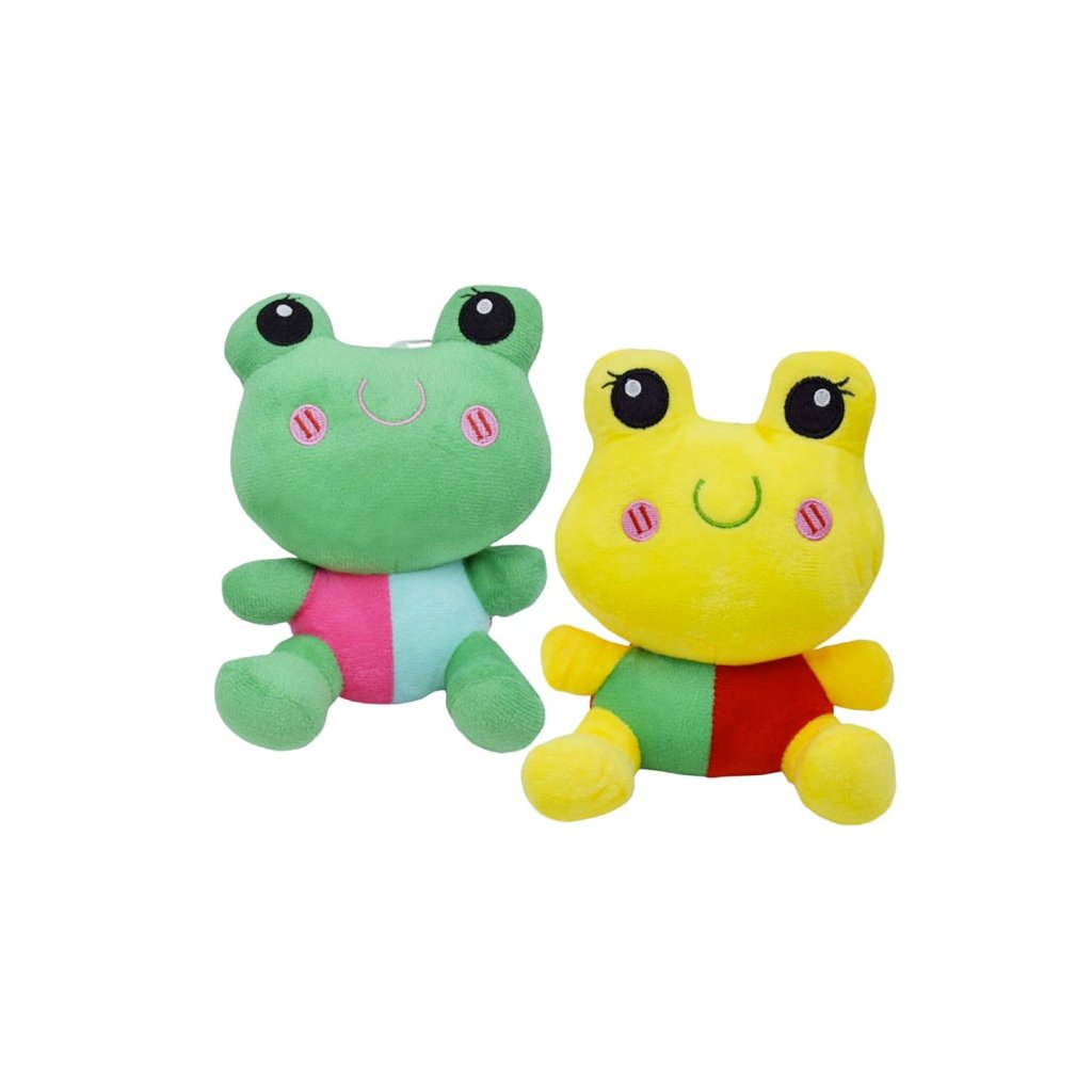 Plyšová sediaca žabka Kvetka s mašličkou pod krkom. Vyšívané očká. Príjemná na dotyk. Rozmer (cm)