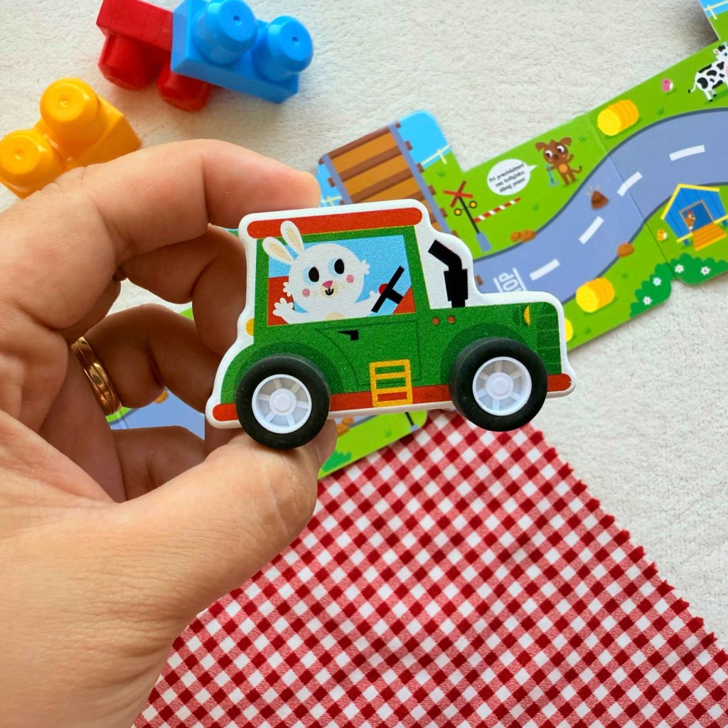 Vyber sa so zajkom Hopkom na výlet na farmu. Stačí rozložiť knihu a vyštartovať. Kniha s autíčkom Zajko Hopko poteší každého malého šoféra. Toto leporelo sa po rozložení zmení na 110 cm dlhú cestu, po ktorej môže jazdiť priložené drevené autíčko alebo akékoľvek menšie autíčko, ktoré máš doma. Deti zaujmú farebné ilustrácie a veselé detaily, ktoré rozvíjajú ich fantáziu aj motoriku. Súčasťou balenia je drevené autíčko. Šťastnú cestu plnú úžasných príbehov. Rozmer (cm)