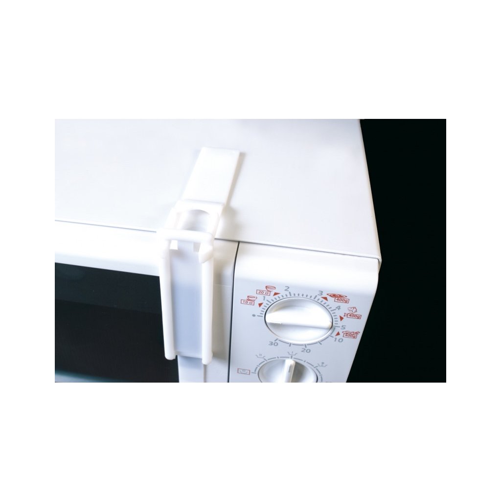 Pomáha zabrániť deťom otvoriť dvierka skriniek, chladničiek, mikrovlnných rúr a iných domácich spotrebičov. Nie je vhodné pre dvierka rúr na pečenie, ktoré sa zohrievajú.