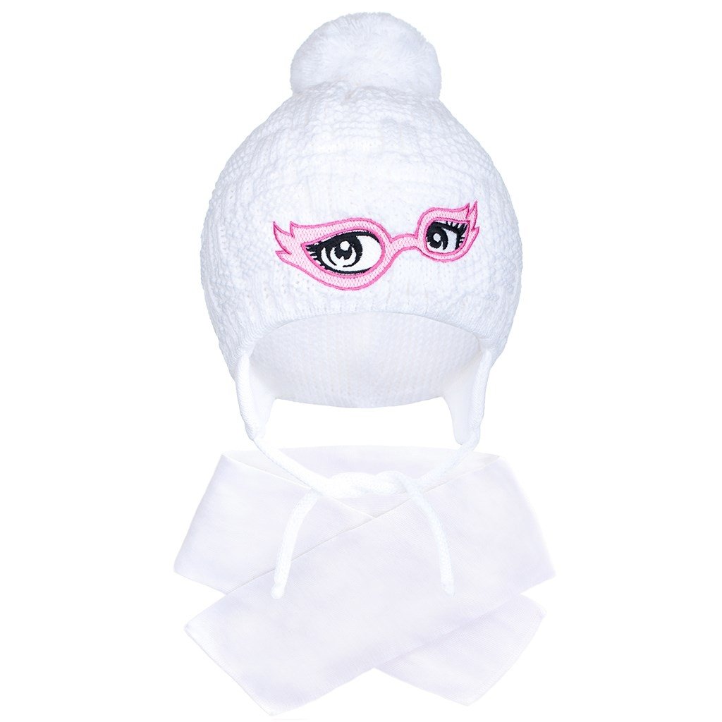 Zimná detská pletená čiapočka so šálom New Baby biela 104 (3-4r)