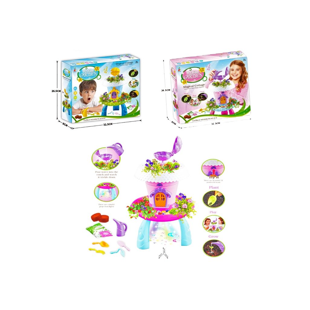 Živá záhradka môže byť aj u teba doma. Sada obsahuje domček s príslušenstvom slúžiaci ako magický kvetináč, zem, semienka kvetov, záhradné náradie s krhličkou a ilustrovaný návod. Hrá aj svieti. Obsahuje batérie. Možnosť výberu modrého alebo ružového kvetináča. Nevhodné pre deti do 3 rokov. Rozmer (cm)