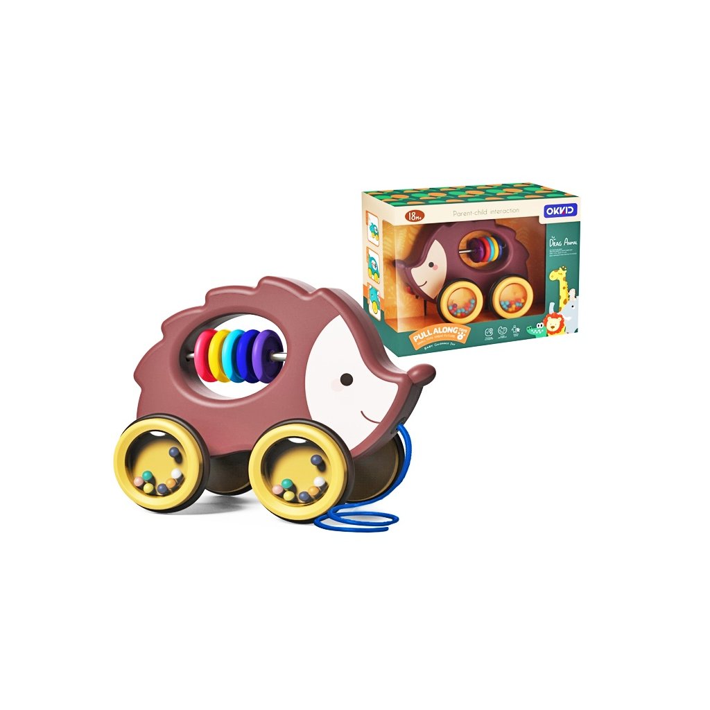 Potiahni ježka za povrázok a sleduj ako pôjde za tebou hojdajúcim pohybom. V kolieskach hŕkajú farebné guľôčky a v brušku môžeš krútiť s farebnými krúžkami.