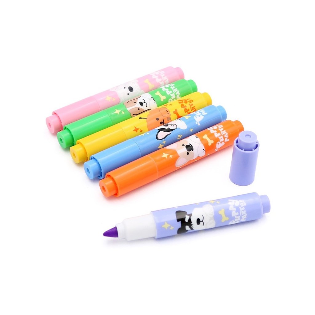 Mini zvýrazňovače pre deti s motívmi psíkov z kolekcie Puppy Party! - sada 6 ks v balení na blistri.