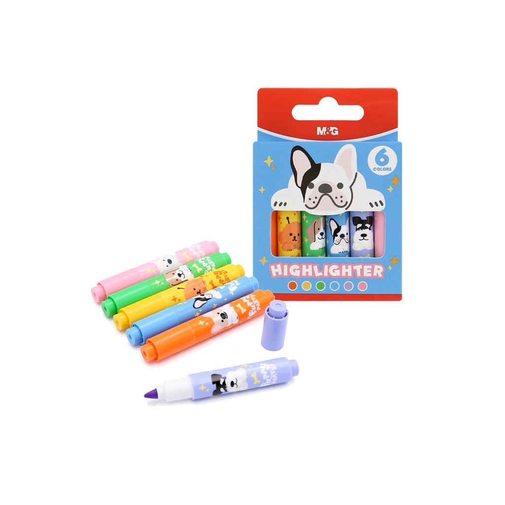 Zvýrazňovač M&G Mini Puppy Party! - sada 6 ks